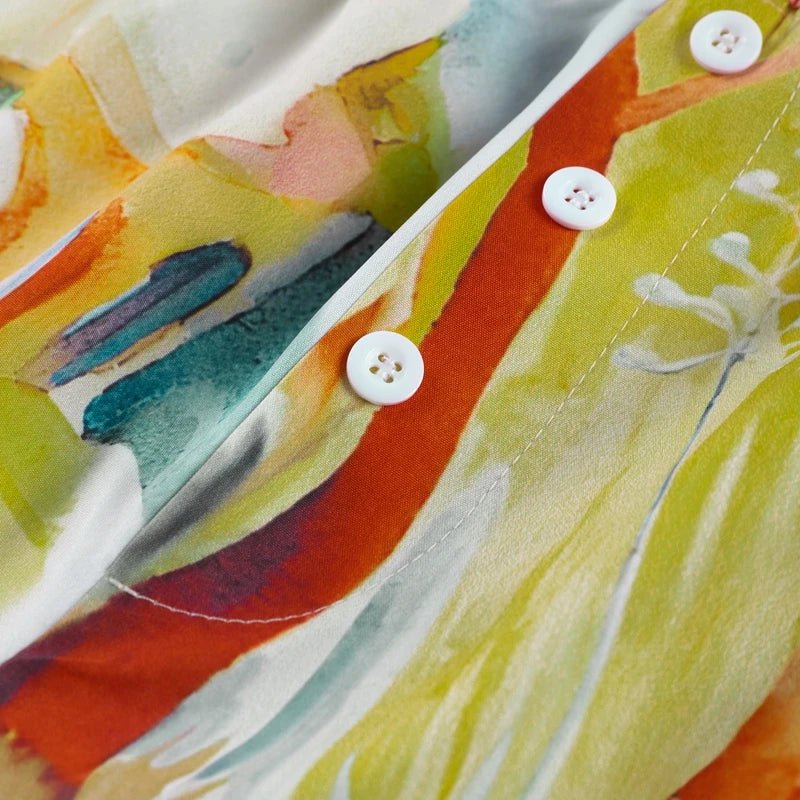 Bunt bedrucktes Langarm-Hemd mit Revers & Knöpfen – Oversize-Fit
